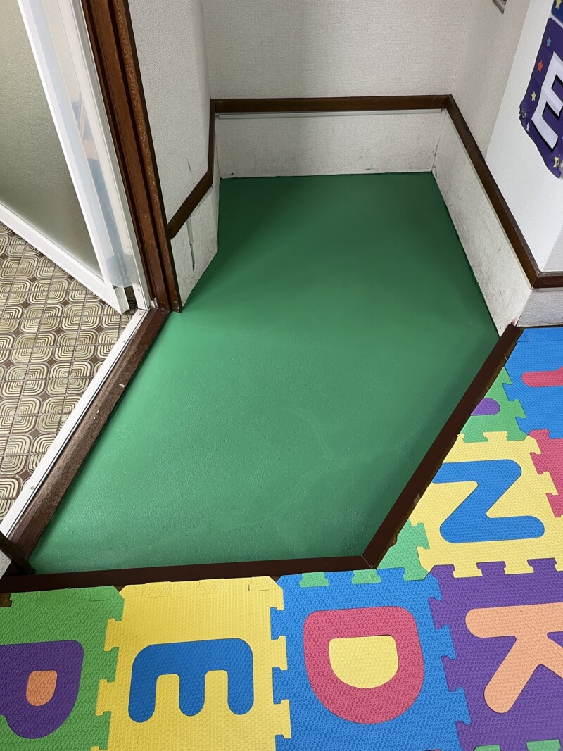 その後、タイルを全部はがし、クッションフロアを敷いたり、人工芝モドキを敷いたりと、色々と試してきましたが結局はコンクリートそのままにしておいたのです😅