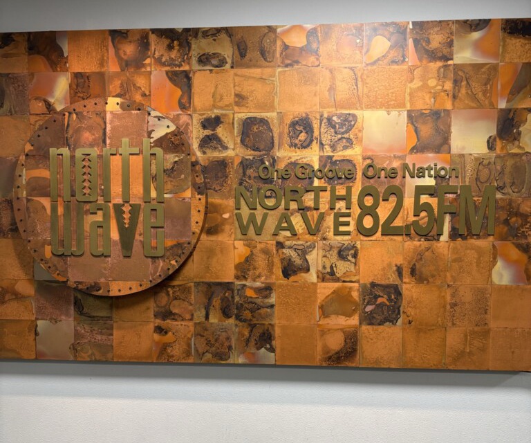 スタジオは、札幌駅前にあるビルに入っているラジオ局で、到着するとまずは「ノースウェーブ」の看板がどーんとお出迎え!