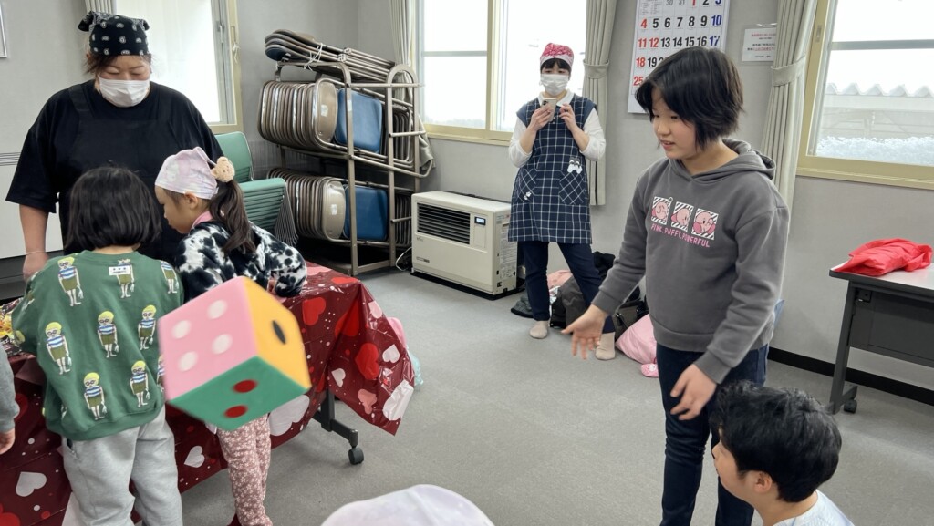 サイコロを振って、出た目の数だけお菓子がもらえるゲームは大盛り上がりで、笑顔いっぱいの時間となりました。