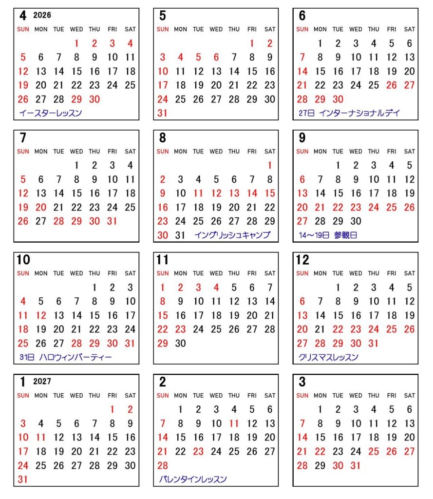 レッスンカレンダー