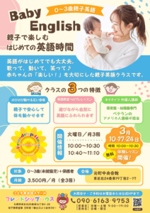0〜3歳の未就園児さんと保護者の方を対象に、親子で楽しむ英語クラス「Baby English」をスタートします。